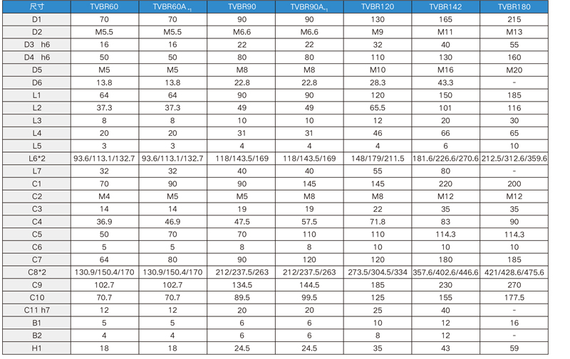 TVBR系列性能參數表 / TVBR Series   Performance Table