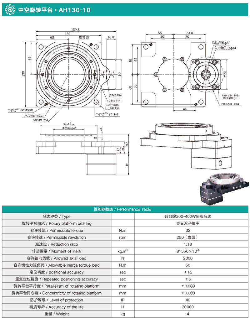 無齒隙,定位精度≤15sec,重復(fù)定位精度可達(dá)±5sec
