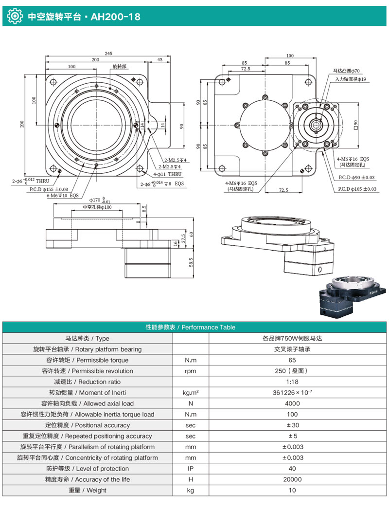 無齒隙,定位精度≤15sec,重復(fù)定位精度可達(dá)±5sec