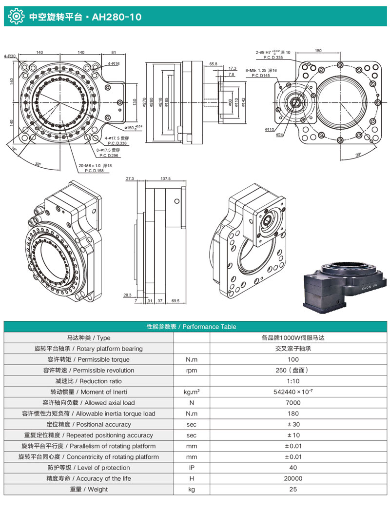 無齒隙,定位精度≤15sec,重復定位精度可達±5sec