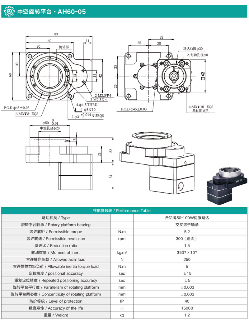無齒隙,定位精度≤15sec,重復(fù)定位精度可達(dá)±5sec